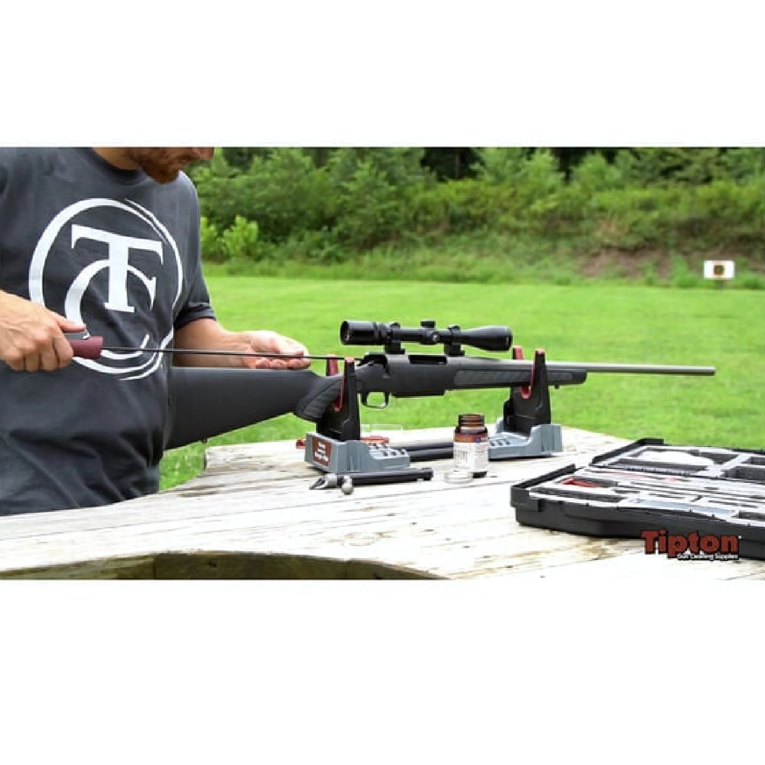 Tüfeği sabit tutar, temizlik ve dürbün hizalaması gibi işlemler için maksimum denge sağlar. Atış öncesi güvenli hazırlık ortamı sunar. |