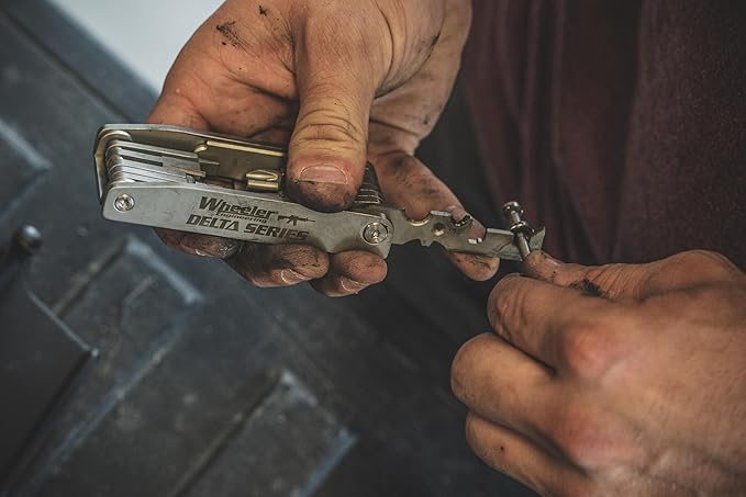Wheeler® Delta Series Compact AR Multi-Tool, AR platformlu tüfekler için özel olarak geliştirilmiş, paslanmaz çelikten üretilmiş, katlanabilir ve kompakt bir bakım aracıdır.
